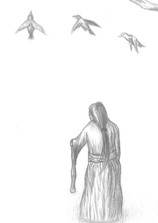 verjagt und konnten sich nirgends niederlassen, konnten keine Ruhe finden. Die drei Raben